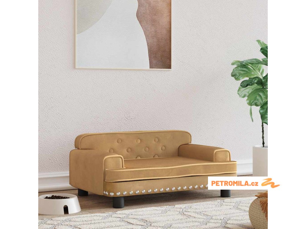 Pelíšek pro psy hnědý 70 x 45 x 30 cm samet