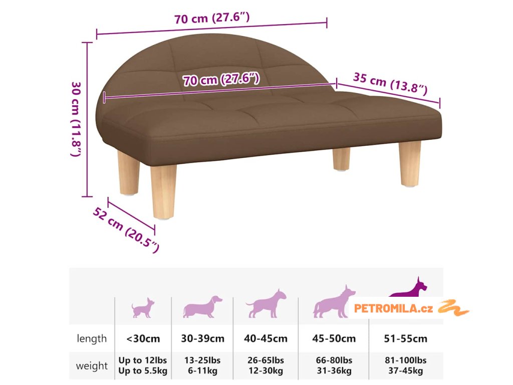 Pelíšek pro psy hnědý 70 x 52 x 30 cm textil