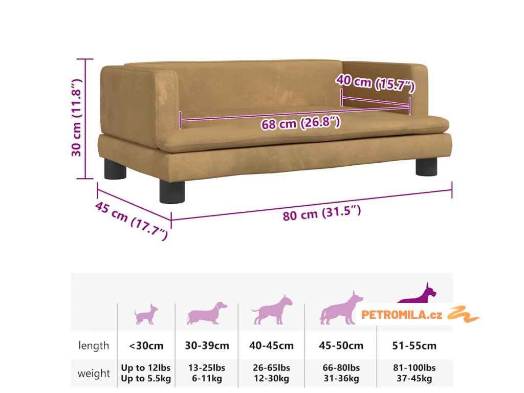 Pelíšek pro psy hnědý 80 x 45 x 30 cm samet