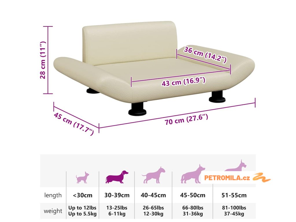 Pelíšek pro psy krémový 70 x 45 x 28 cm umělá kůže