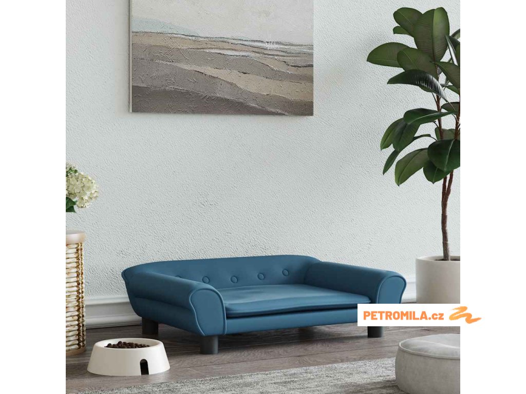 Pelíšek pro psy modrý 70 x 48 x 22 cm samet