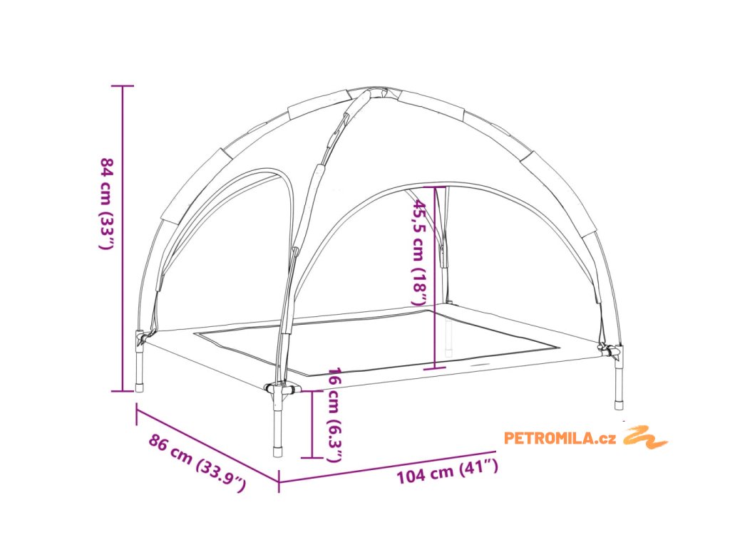 - Pevný a stabilní rám: Ocelový rám s práškovým nástřikem zajišťuje pevnost a dlouhou životnost vyvýšeného pelíšku. Čtyři protiskluzové gumové nožičky zvyšují stabilitu.