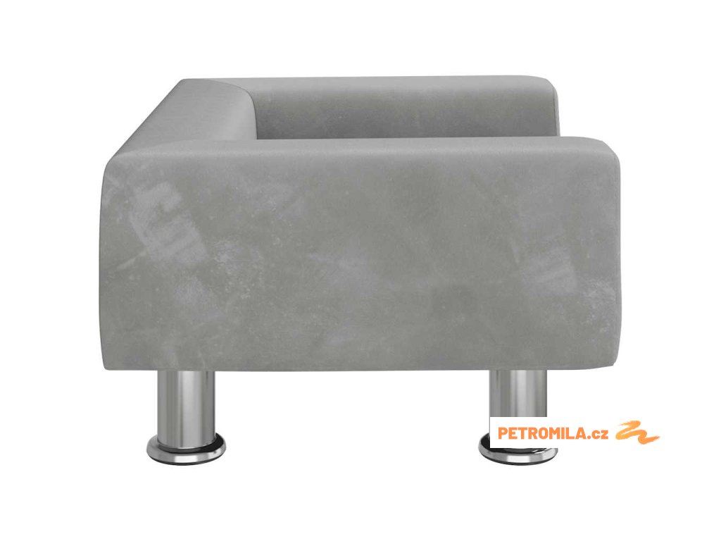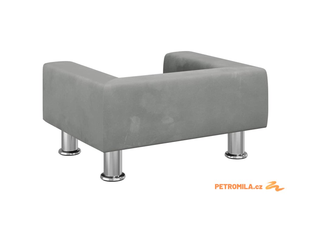- Pevný a odolný rám: Rám z masivního borového dřeva zajišťuje robustnost a odolnost této pohovky pro psy. Čtyři nožičky z chromované oceli jí navíc dodávají extra stabilitu.