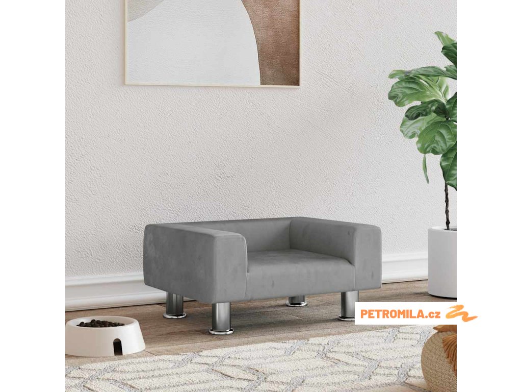 Pelíšek pro psy světle šedý 50 x 40 x 26,5 cm samet