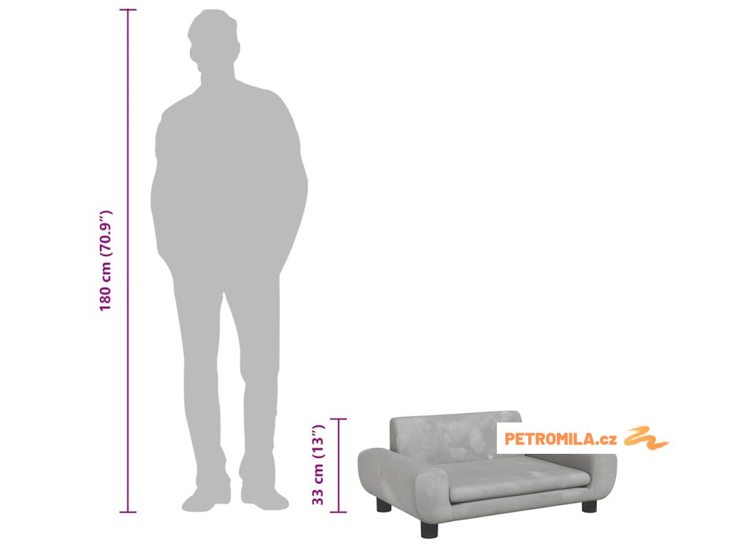 Pelíšek pro psy světle šedý 70 x 45 x 33 cm samet