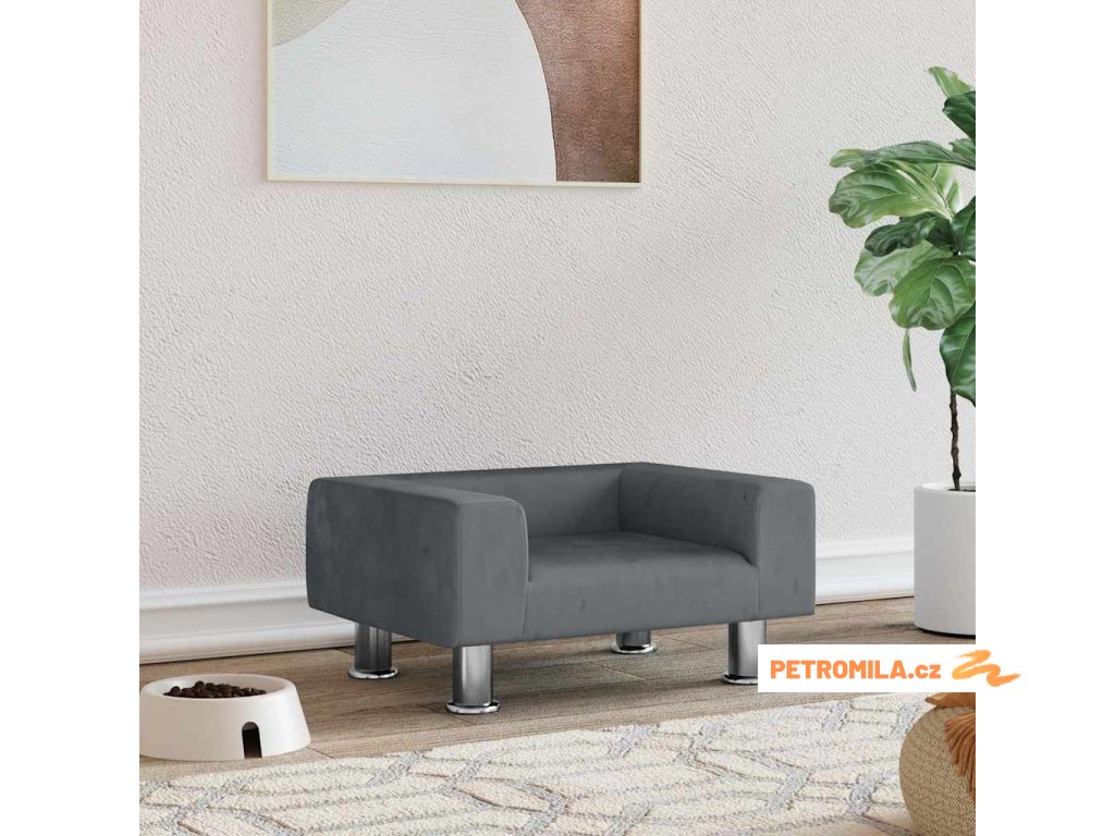 Pelíšek pro psy tmavě šedý 50 x 40 x 26,5 cm samet