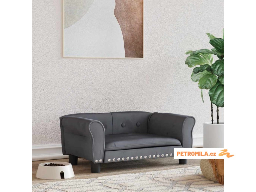 Pelíšek pro psy tmavě šedý 70 x 45 x 30 cm samet