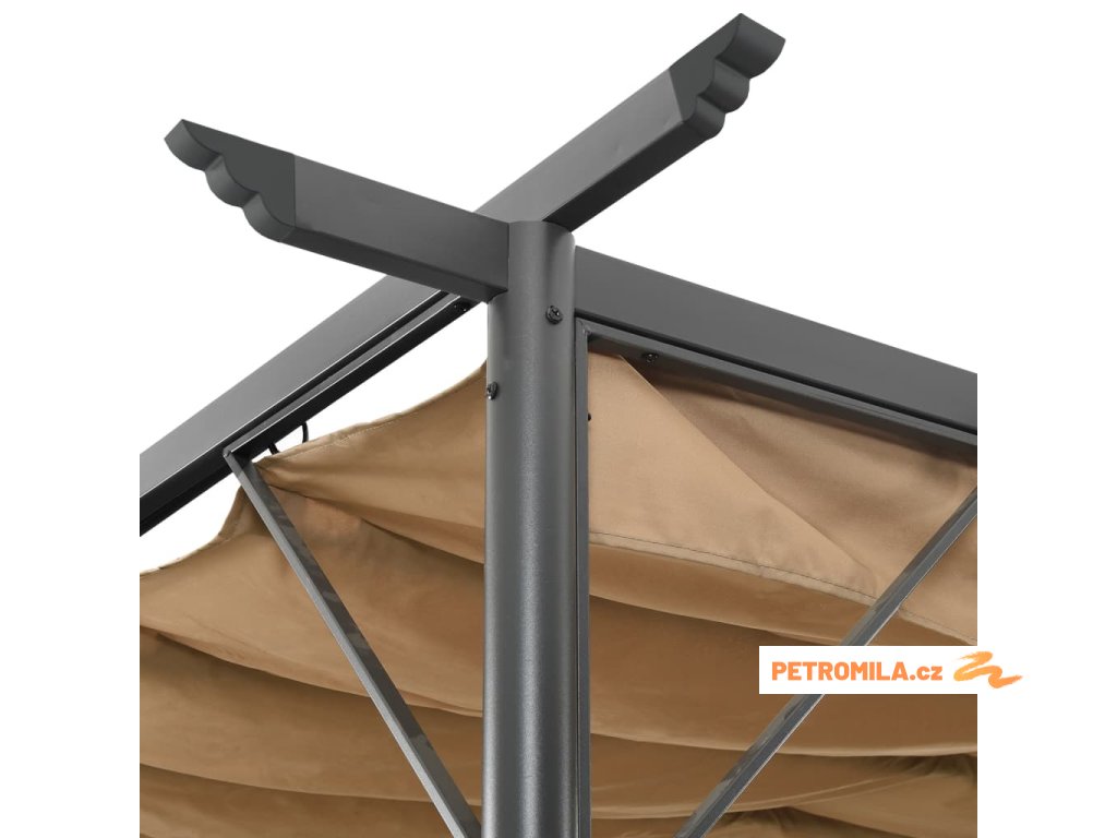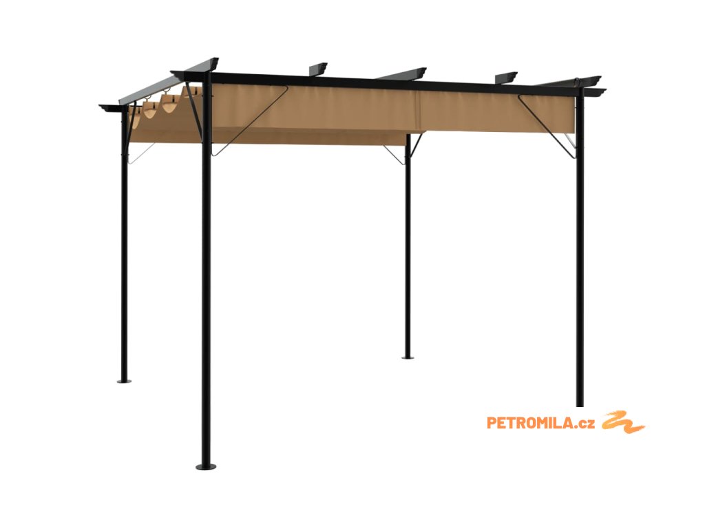 Pergola se zatahovací střechou taupe 3 x 3 m ocel 180 g/m²