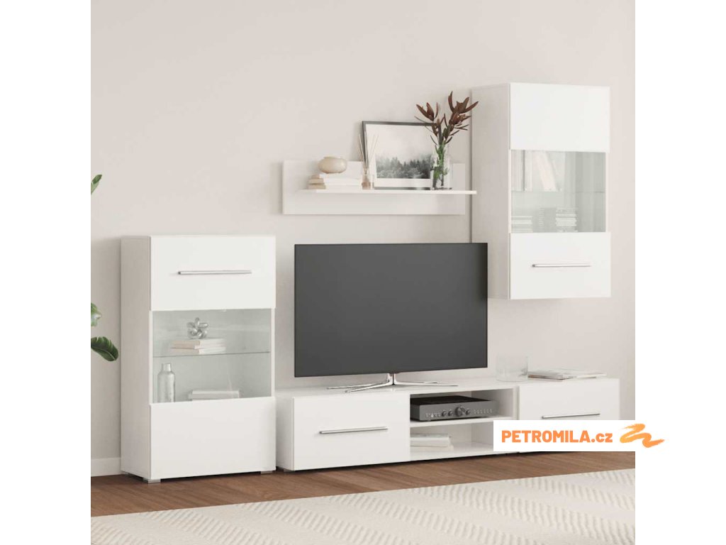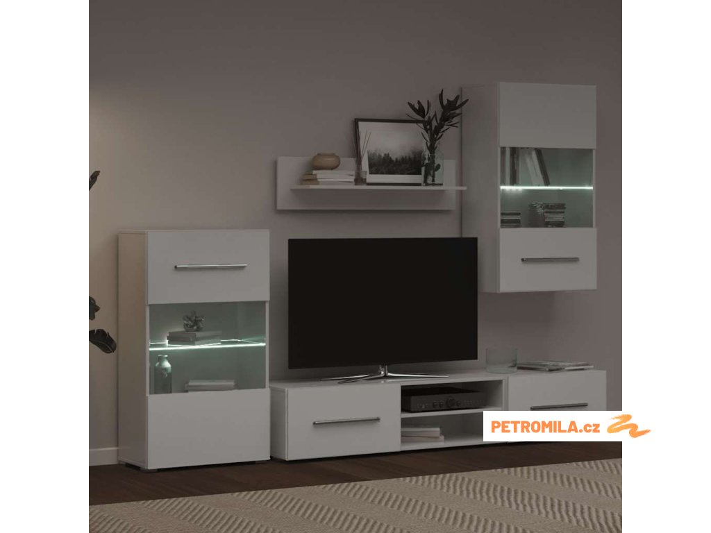 Pětidílná obývací stěna s LED osvětlením bílá