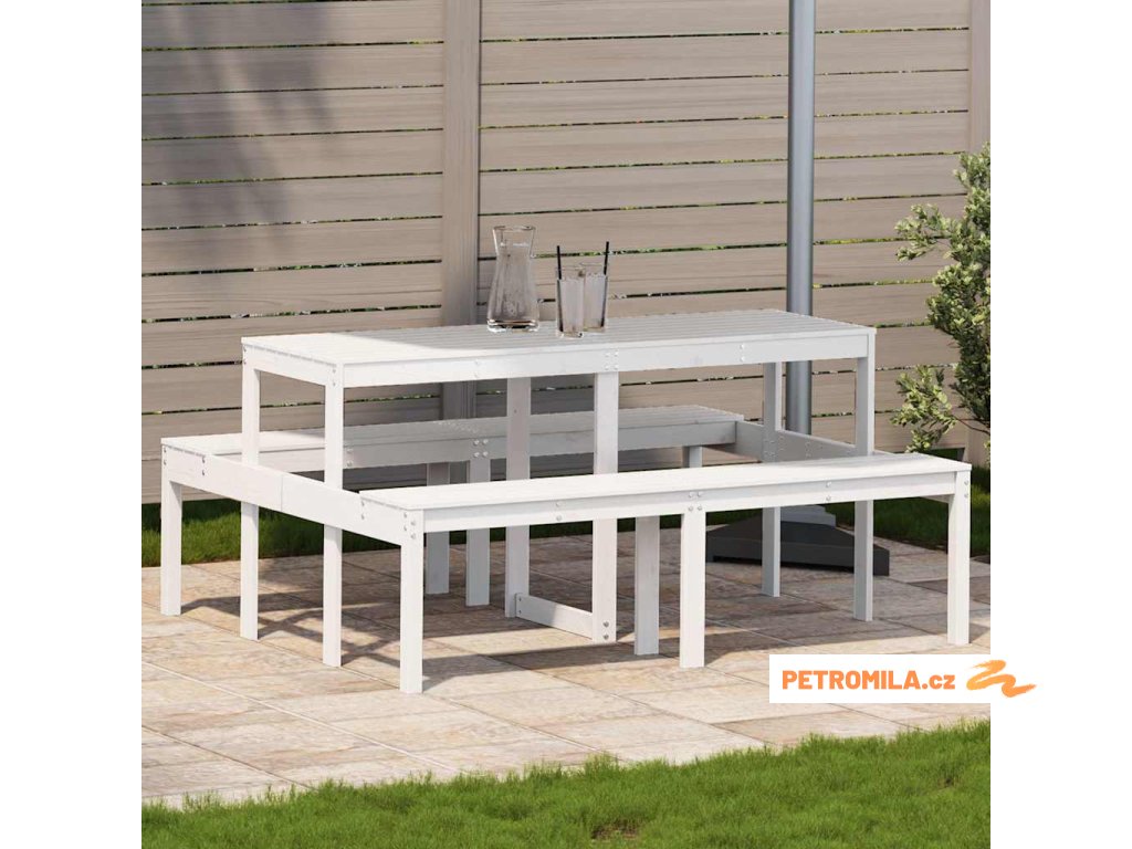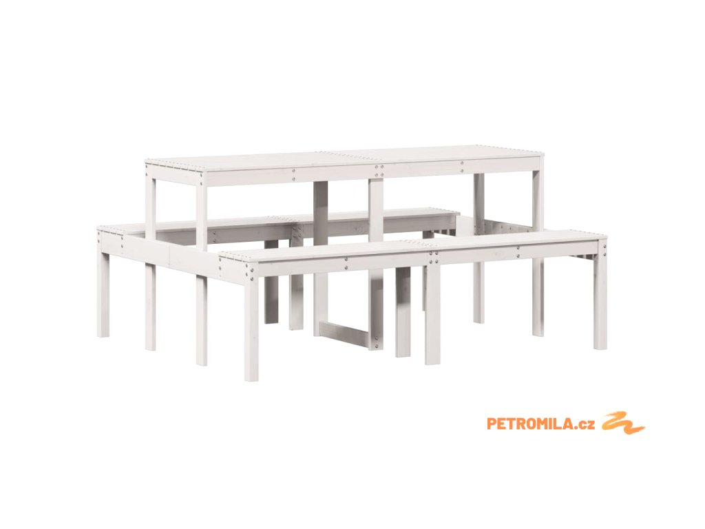 Piknikový stůl bílý 160 x 134 x 75 cm masivní borové dřevo