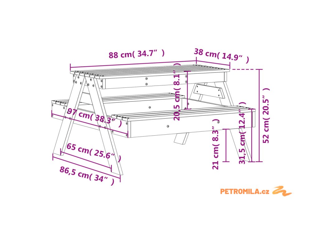- Odolné a robustní: Zahradní piknikový stůl je vyroben z masivního borového dřeva a má pevnou a stabilní konstrukci, takže může vaše dítě provázet po dlouhou dobu.