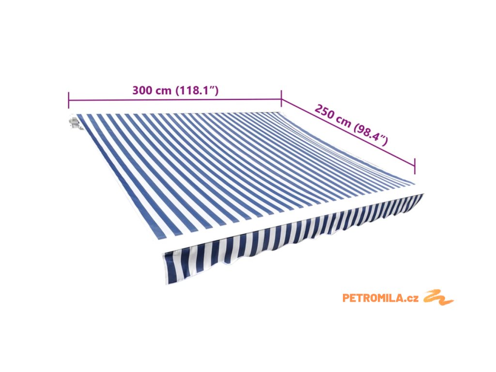 Plachta na markýzu plátěná modro-bílá 3 x 2,5 m (bez rámu)
