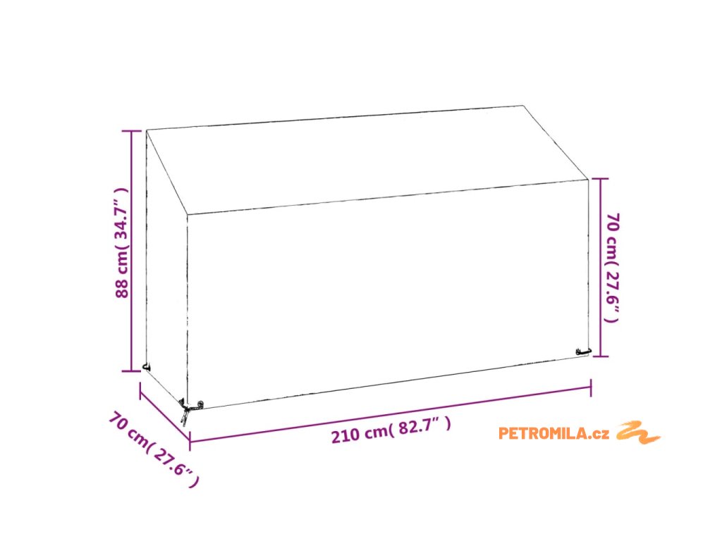 Plachta na zahradní lavici 12 oček 210 x 70 x 70/88 cm PE