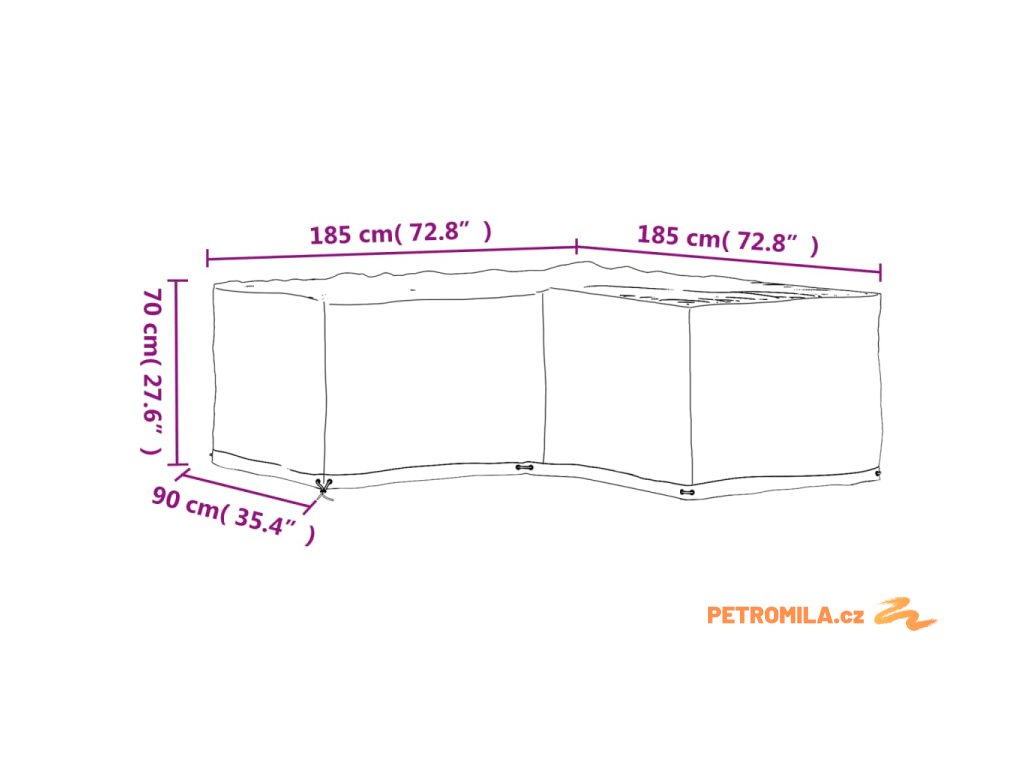 Plachta na zahradní nábytek tvar L 12 oček 185 x 185 x 70 cm