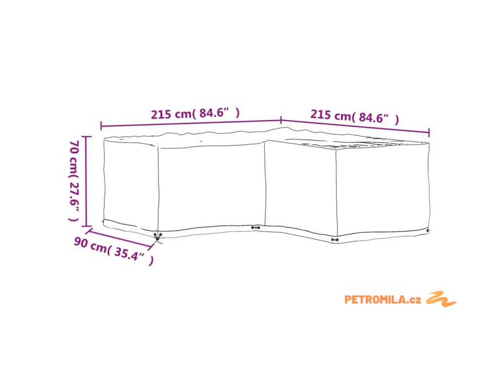 Plachta na zahradní nábytek tvar L 16 oček 215 x 215 x 70 cm