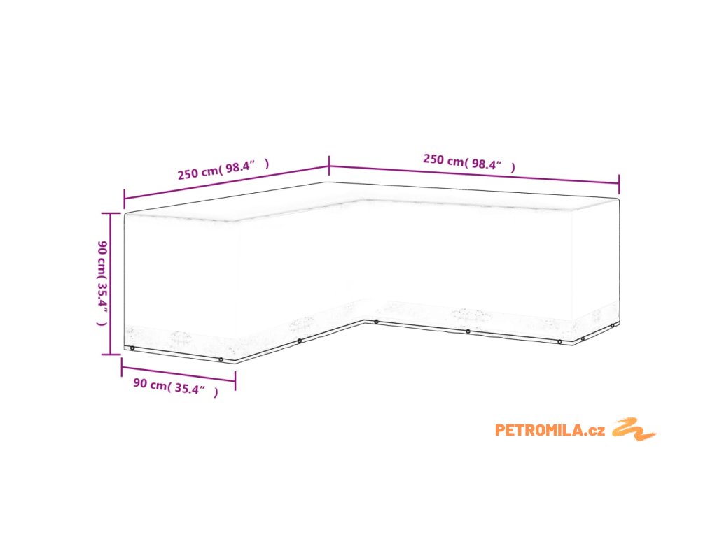 Plachta na zahradní nábytek ve tvaru L 12 oček 250x250x90 cm