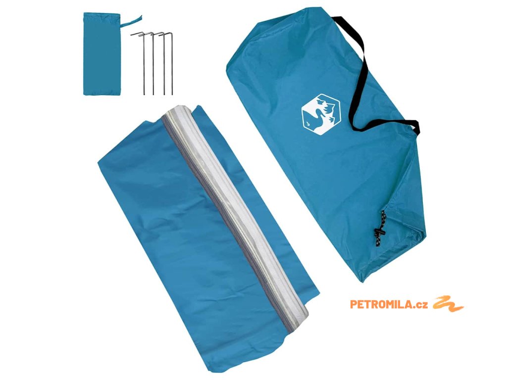 - Základní komponenty zahrnuty: Balení obsahuje plachtu, dvě kotevní lana o délce 700 cm, čtyři robustní kolíky a praktickou tašku na přenášení. Každá součást je navržena pro snadné sestavení, pokud ji sestavují dva lidé pomocí kotev.