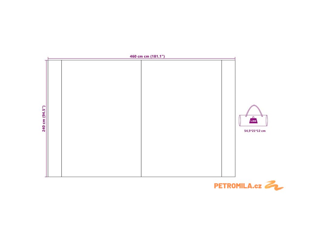 - Celkové rozměry: 460 x 240 cm (D x Š)
