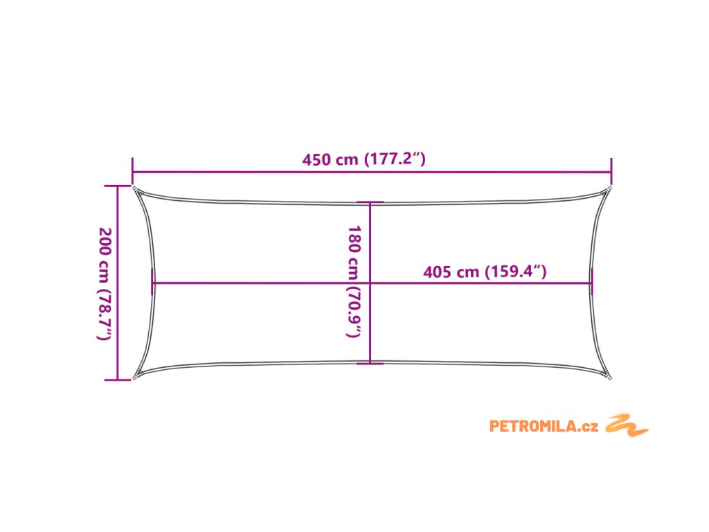 - Rozměry: 2 x 4,5 m (D x Š)