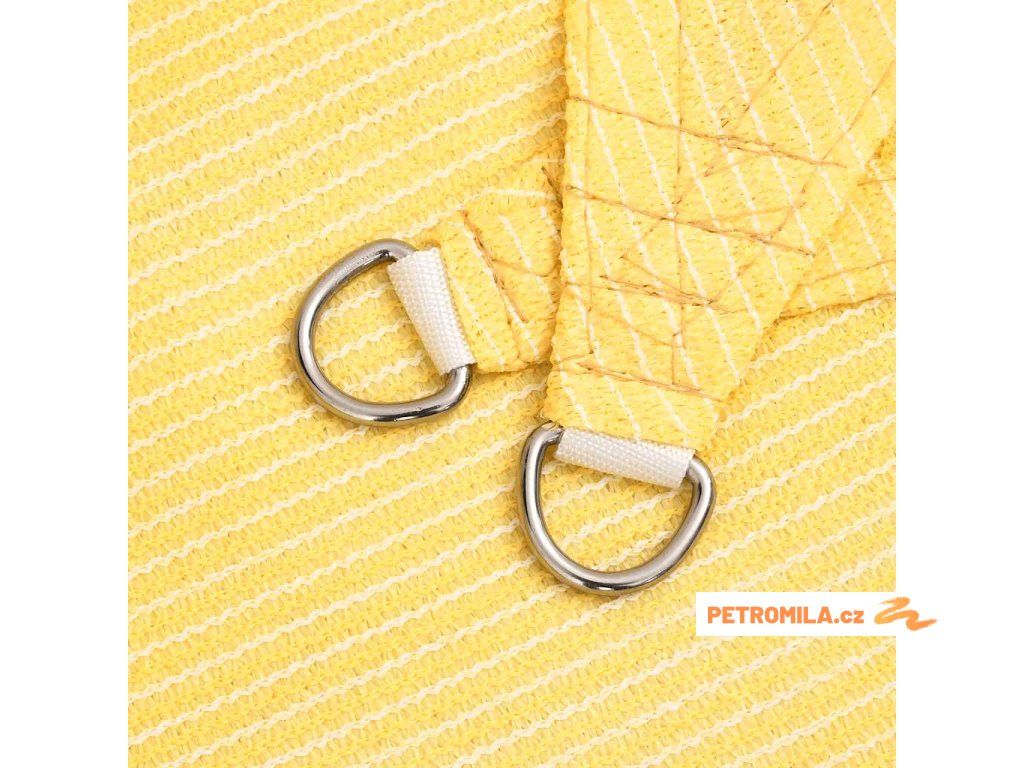 Sluneční plachta vyrobená ze 100% HDPE (vysokohustotní polyethylen) vás chrání před přímým slunečním zářením, umožňuje dostatečný průchod vzduchu a je propustná pro vodu. HDPE je speciálně upraven, takže je odolný proti plísním a UV záření. Slunečník se snadno sestavuje pomocí nerezových upevňovacích prvků na každém rohu a přiložených lanek.