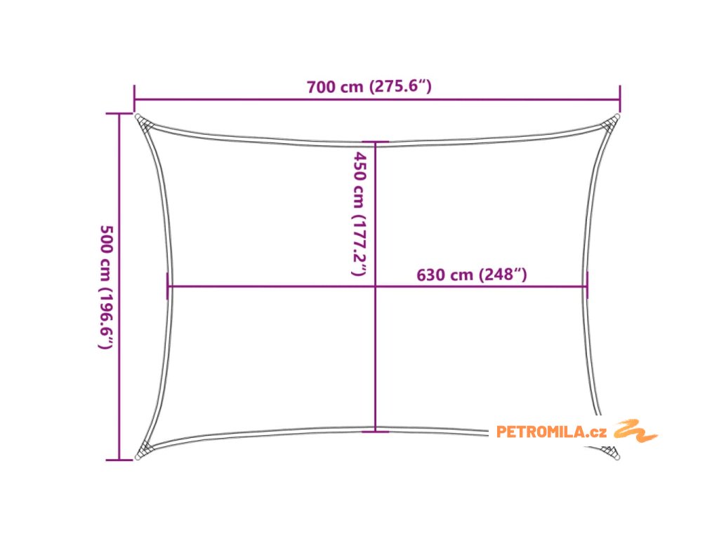Sluneční plachta vyrobená ze 100% HDPE (vysokohustotní polyethylen) vás chrání před přímým slunečním zářením, umožňuje dostatečný průchod vzduchu a je propustná pro vodu. HDPE je speciálně upraven, takže je odolný proti plísním a UV záření. Slunečník se snadno sestavuje pomocí nerezových upevňovacích prvků na každém rohu a přiložených lanek.
