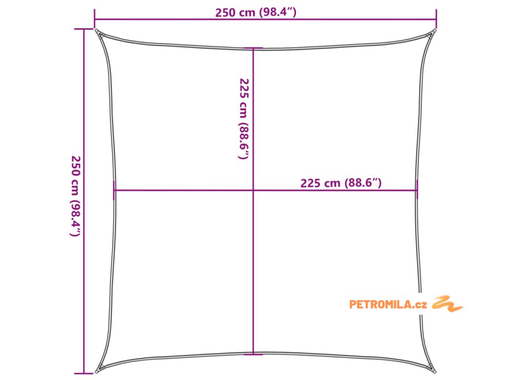 - Rozměry: 2,5 x 2,5 m (D x Š)