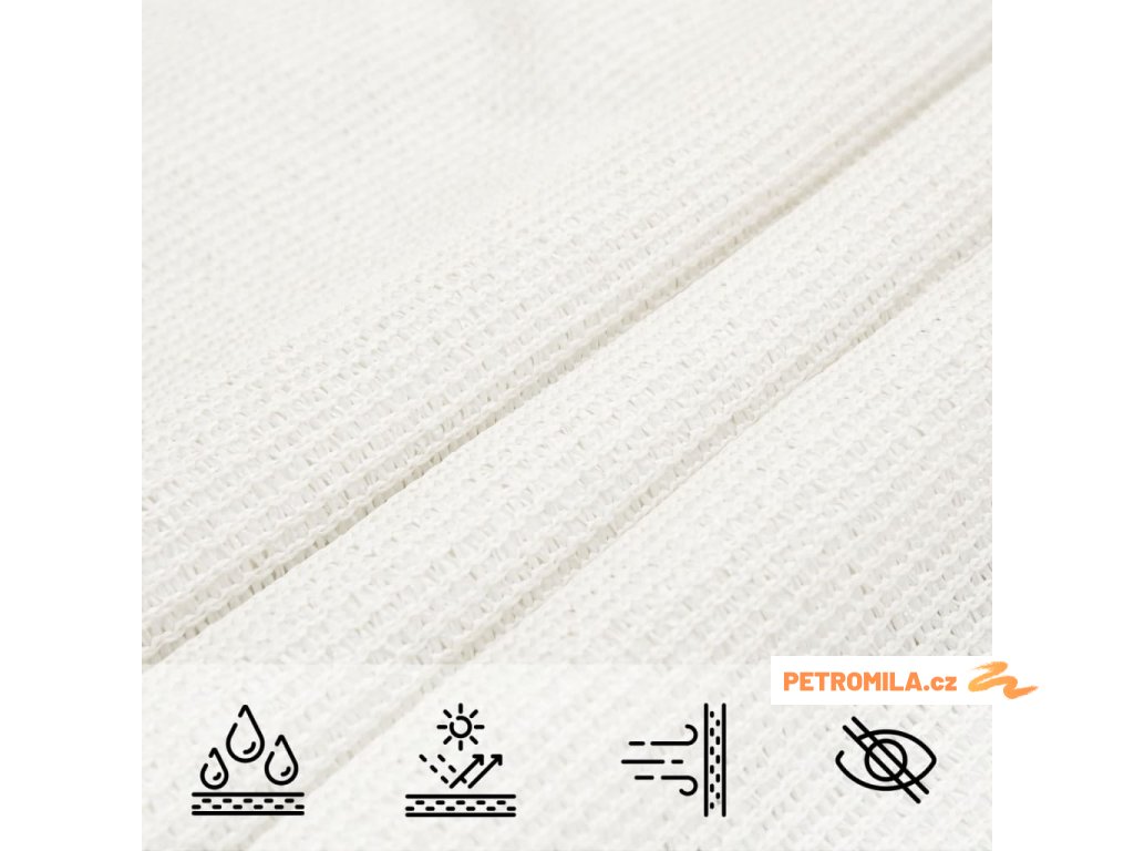 Sluneční plachta, vyrobená ze 100% HDPE (vysokohustotní polyethylen), vás chrání před přímým slunečním světlem, umožňuje dostatečný průtok vzduchu a propouští vodu. HDPE je speciálně ošetřen, takže je odolný proti plísním a UV záření.