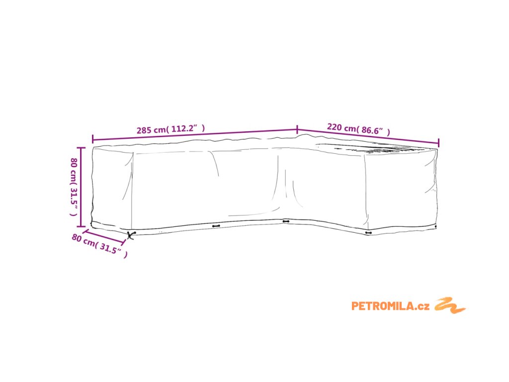 Plachty na zahradní nábytek tvar L 2 ks 18 oček 285x220x80 cm