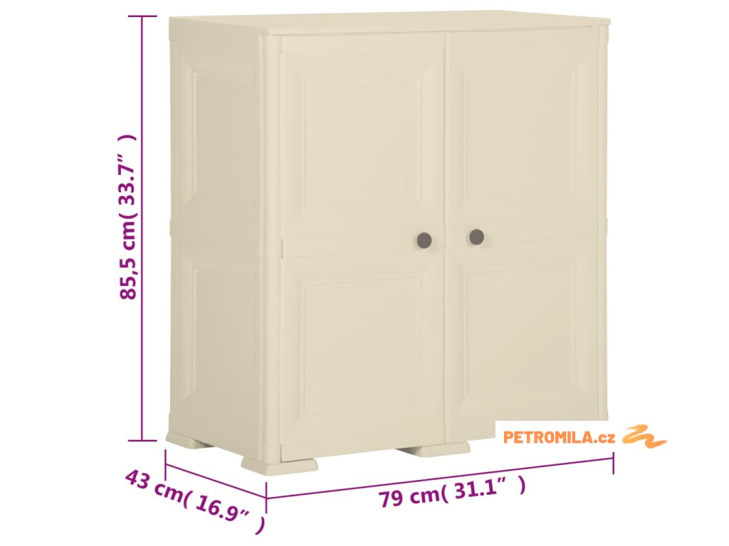Úložná skříňka je vyrobená z plastu, takže se snadno čistí. Uvnitř najdete spoustu místa, kam si můžete uschovat všechny důležité věci, které chcete mít na dosah ruky. Skříň má kompaktní design a pomůže vám maximálně využít i omezené prostory.