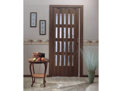 Shrnovací dveře PETROMILA jsou typické svým rozměrným prosklením v celé délce každé lamely. Na výběr je z pěti barevných moderních dekorů. Kloubový spoj lamel zajišťuje dlouhou životnost dveří. Výška dveří je upravitelná seříznutím spodního konce lamel na požadovaný rozměr.