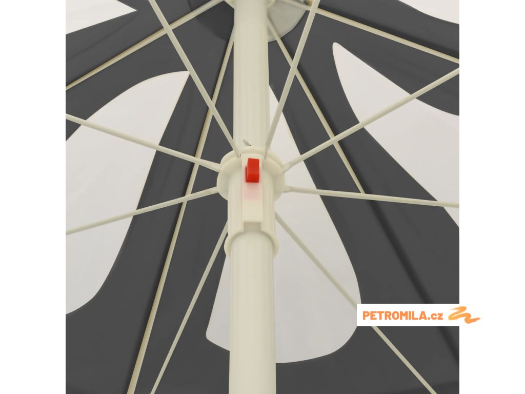 Stříšku slunečníku podepírají robustní žebra. Slunečník lze postavit do vašeho stávajícího stojanu nebo ho zasunout do stolu s otvorem uprostřed. Navíc si ho můžete nastavit a naklonit, kam potřebujete, aby vás optimálně chránil před sluncem. Větrací otvor na horní straně slouží k lepšímu proudění vzduchu, takže slunečník zůstane stabilní a odolá i silnému větru. Květinový design je jedinečný a elegantní a na pláži se s ním neztratíte.