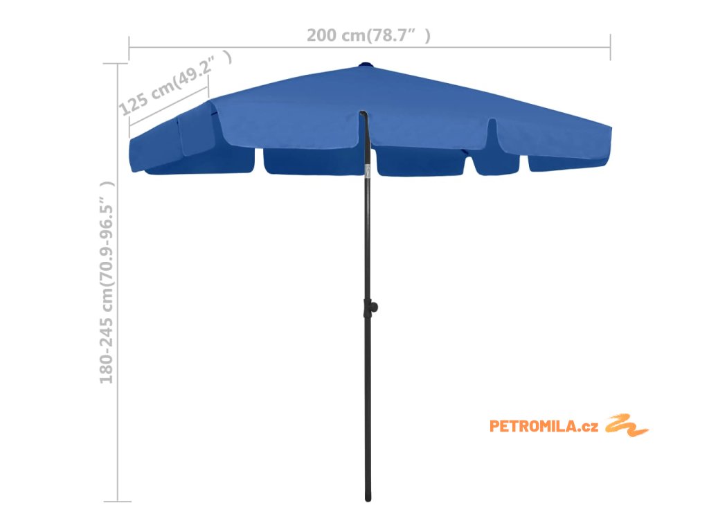Plážový slunečník azurově modrý 200 x 125 cm