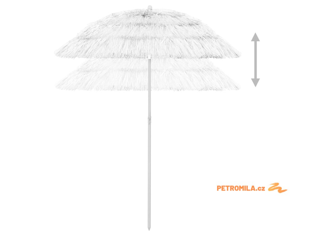 Plážový slunečník Hawaii je vyrobený z polyesteru, který nebledne a dobře odolává UV záření, je tudíž ideální pro blokování škodlivých UV paprsků.