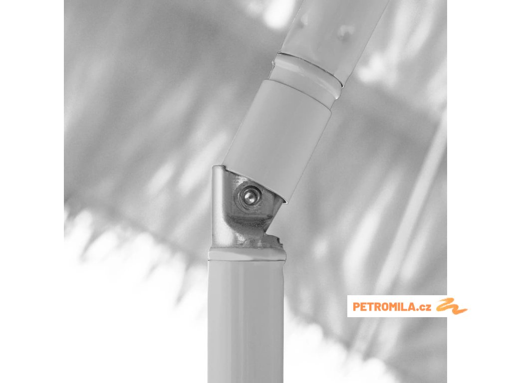 Stříšku pevně podepírají žebra slunečníku. Roztaženou stříšku zajišťuje pevný kolík umístěný na středové tyči. Slunečník můžete zasadit do svého stávajícího slunečníkového stojanu nebo do středu stolů s otvory na slunečník. Abyste se mohli optimálně chránit před sluncem, je možné úhel slunečníku upravit a naklonit ho tak, jak potřebujete.