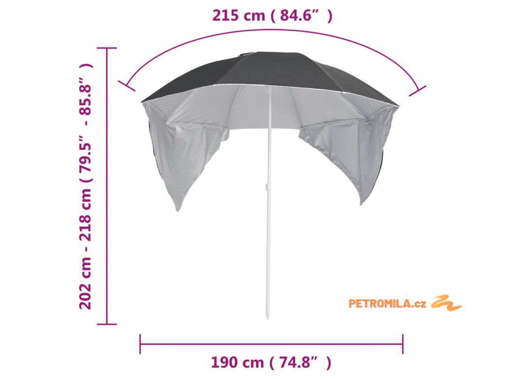 Plážový slunečník s bočními stěnami antracitový 215 cm