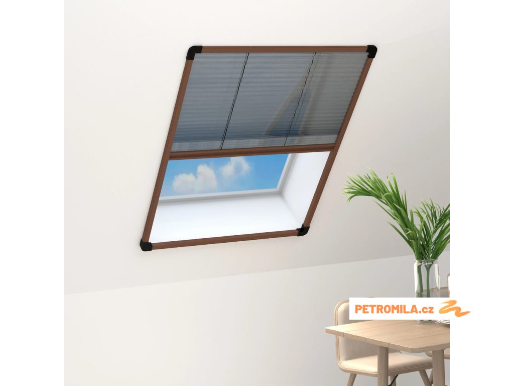 Plisovaná okenní síť proti hmyzu hliník hnědá 80 x 100 cm