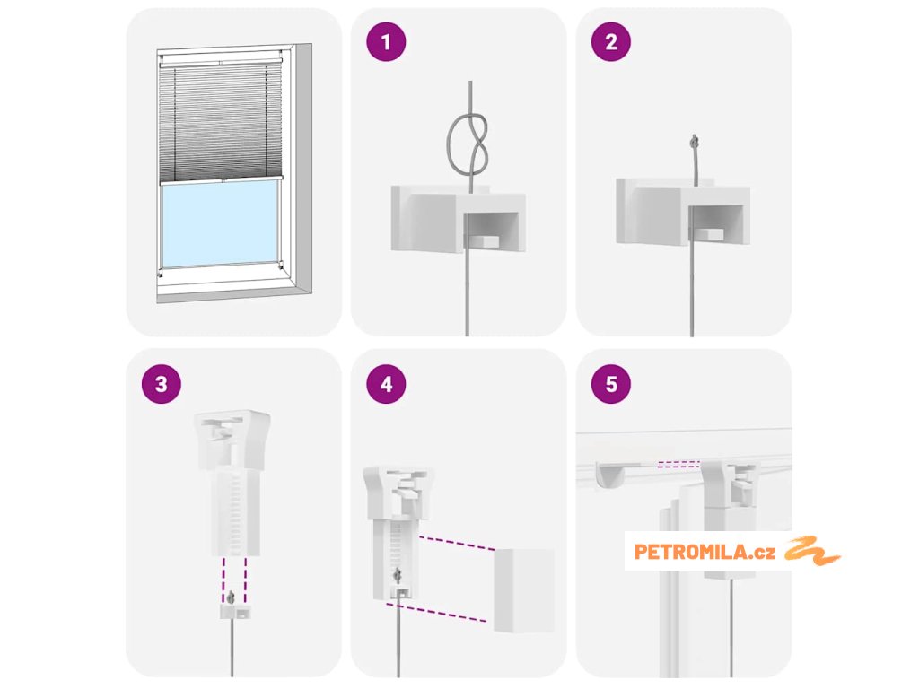Plisované rolety se připevňují pomocí upínacího držáku bez nutnosti vrtání do zdi, okna nebo dveří a proto jsou tyto rolety ideální pro letní sídla, obývací pokoje, koupelny, kuchyně, jídelny, kanceláře, zasedací místnosti, pokoje pro hosty i další.