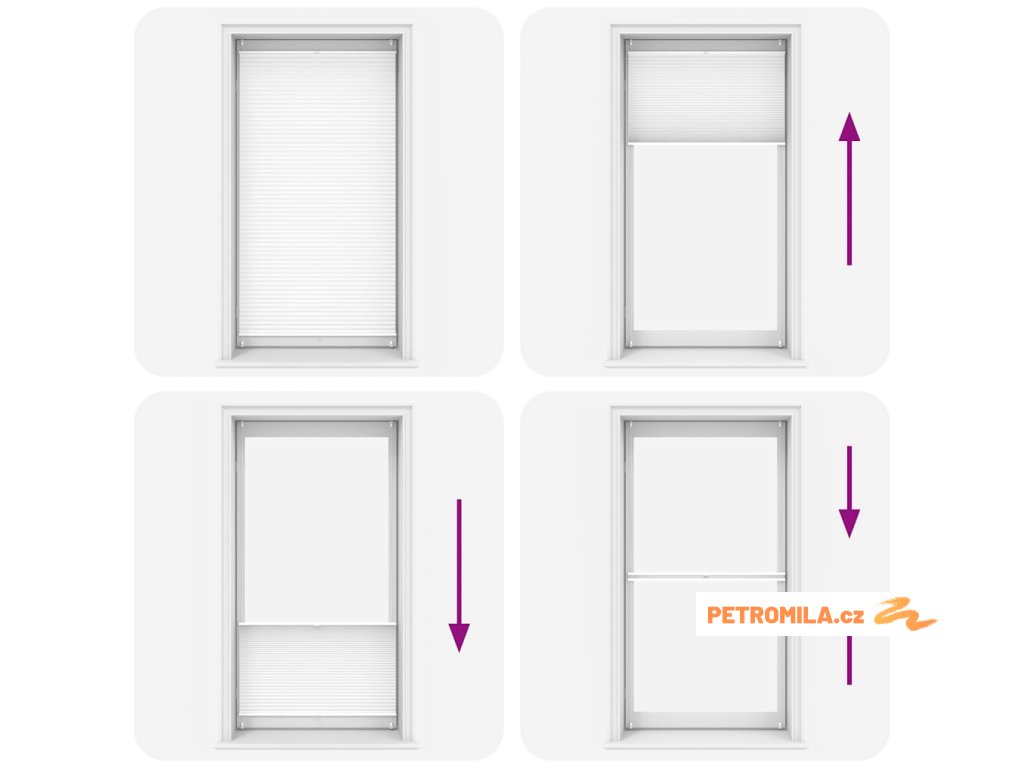 Tyto bílé plisované žaluzie jsou ideální pro zajištění soukromí a ochranu před sluncem. Lze s nimi pohybovat jak v horní, tak i v dolní části, dle vaší potřeby. Nastavením do různých poloh dosáhnete zajímavých efektů.