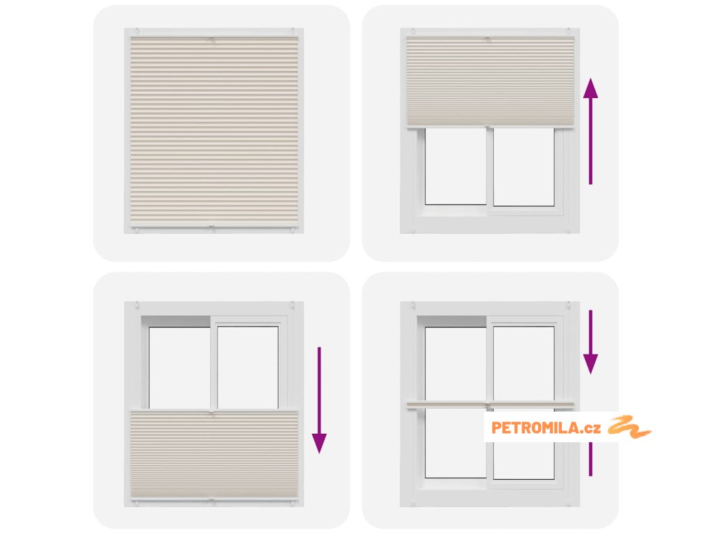 Tyto krémové plisované žaluzie jsou ideální pro zajištění soukromí a ochranu před sluncem. Lze s nimi pohybovat jak v horní, tak i v dolní části, dle vaší potřeby. Nastavením do různých poloh dosáhnete zajímavých efektů.