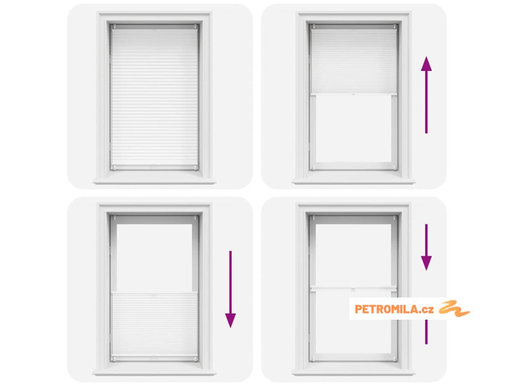 Tato bílá plisovaná žaluzie je ideální pro zajištění soukromí a ochranu před sluncem. Lze s ní pohybovat jak v horní, tak i v dolní části, dle vaší potřeby. Nastavením do různých poloh dosáhnete zajímavých efektů.