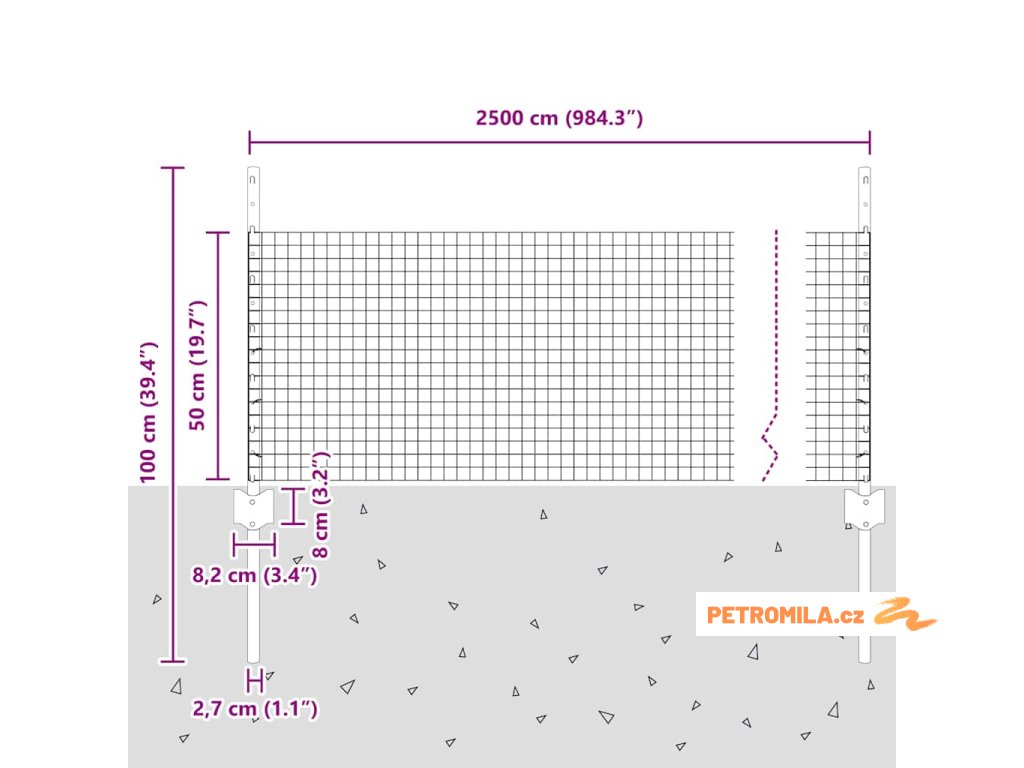 Plot s příspěvky Stříbrná 0.5 x 100 m Ocel potažená PVC