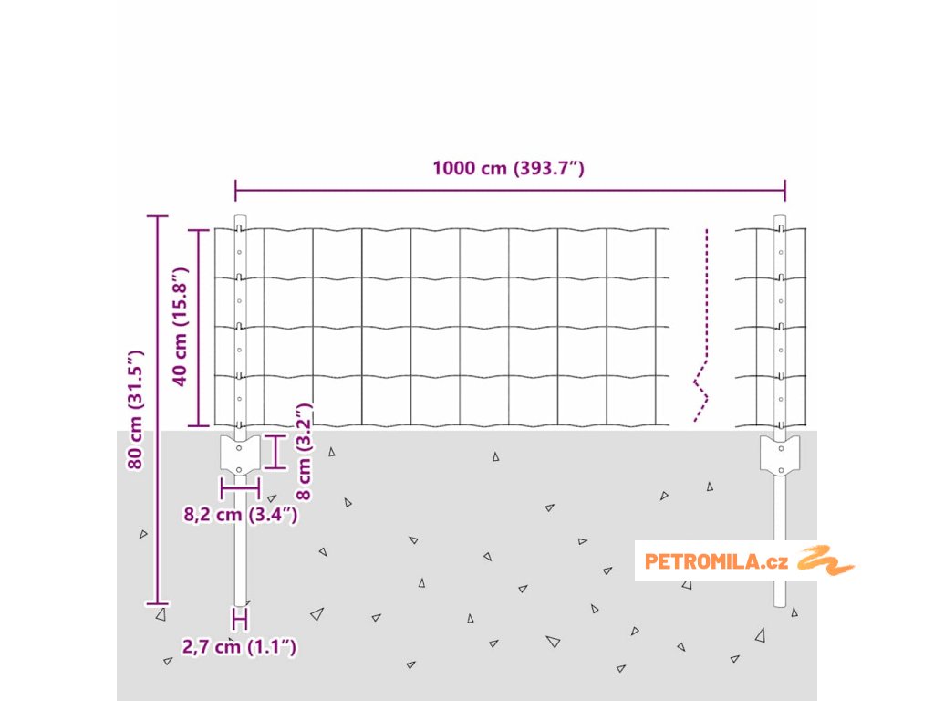 Pastevní plot Stříbrná 50 x 1.4 m Pozinkovaná ocel