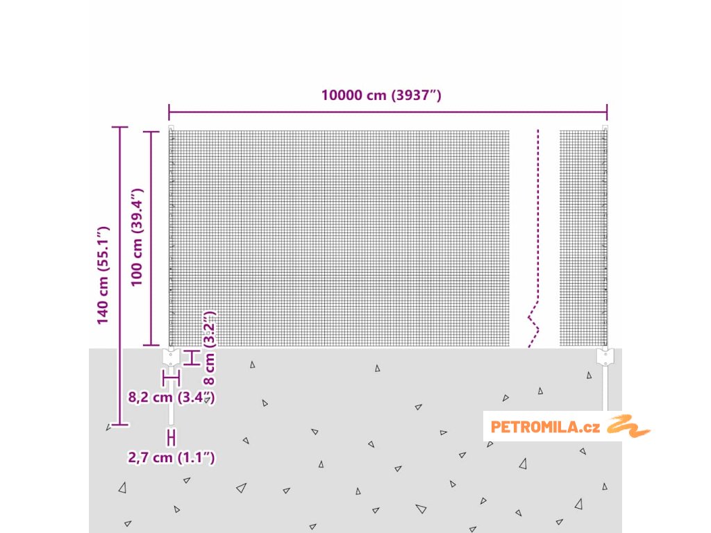 - Celkové rozměry: 10000,0 x 2,7 x 100 cm (D x Š x V)