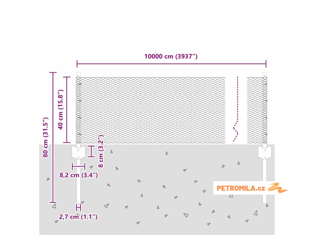 - Celkové rozměry: 10000.0 x 2.7 x 40 cm (D x Š x V)
