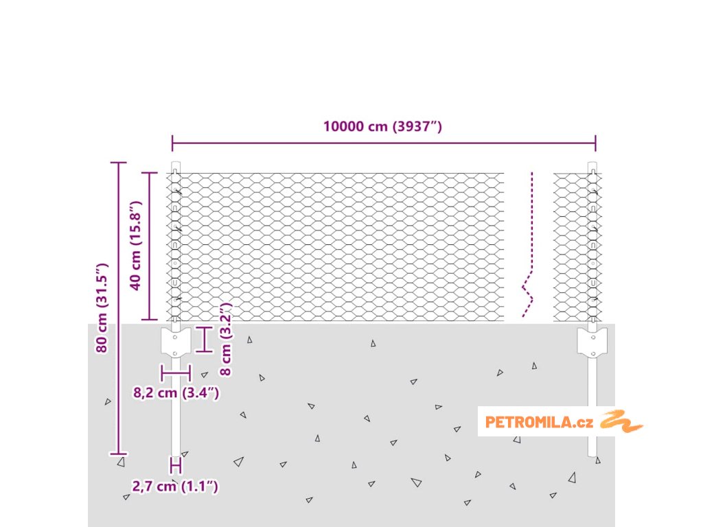 - Celkové rozměry: 10000.0 x 2.7 x 40 cm (D x Š x V)