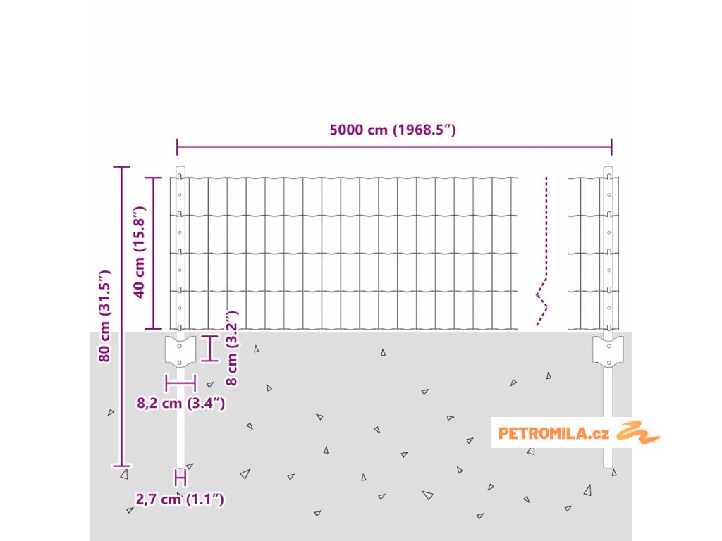- Celkové rozměry: 5000 x 2.7 x 40 cm (D x Š x V)