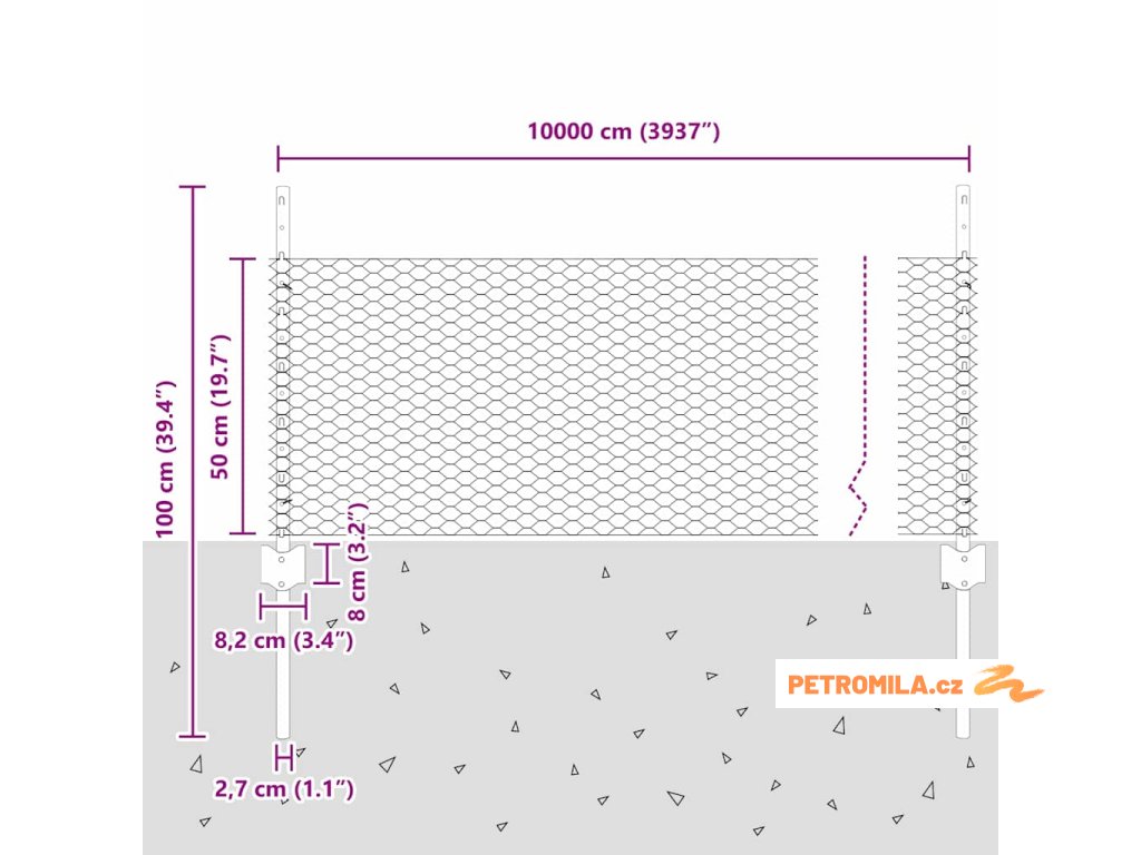 - Celkové rozměry: 10000.0 x 2.7 x 50 cm (D x Š x V)