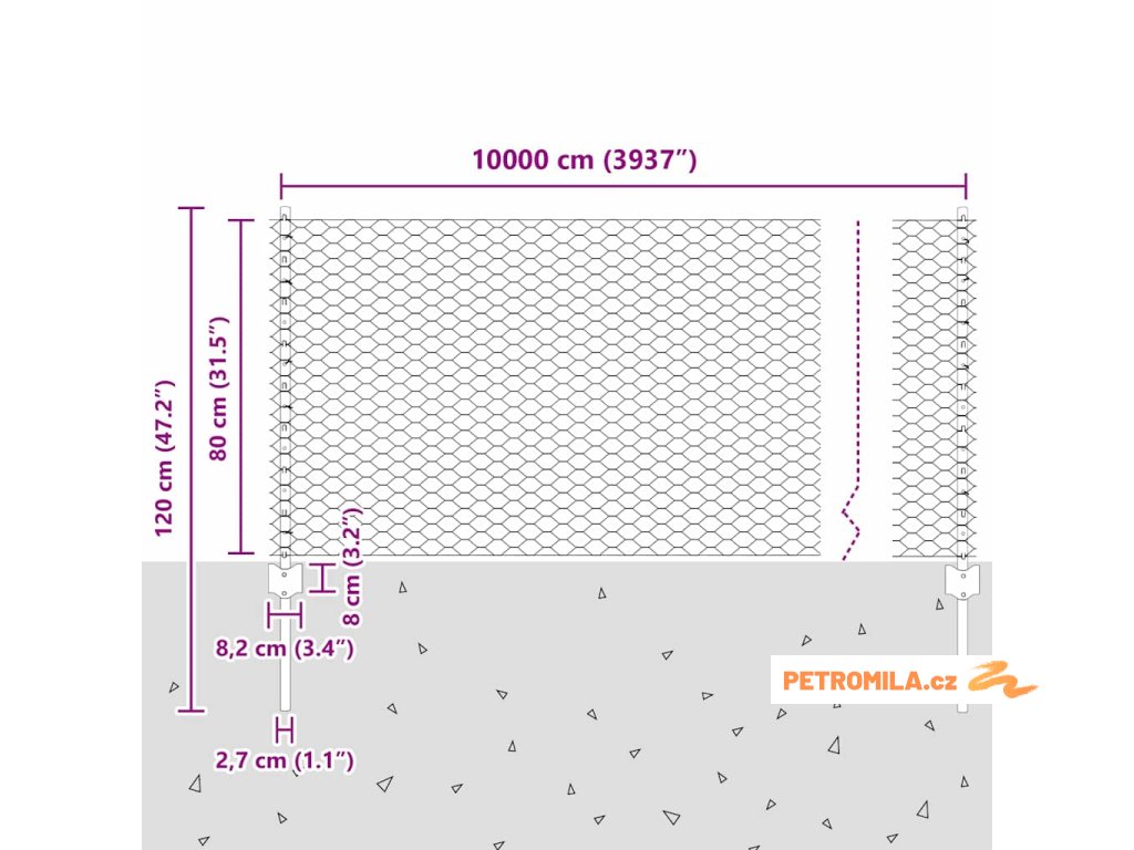- Celkové rozměry: 10000.0 x 2.7 x 80 cm (D x Š x V)