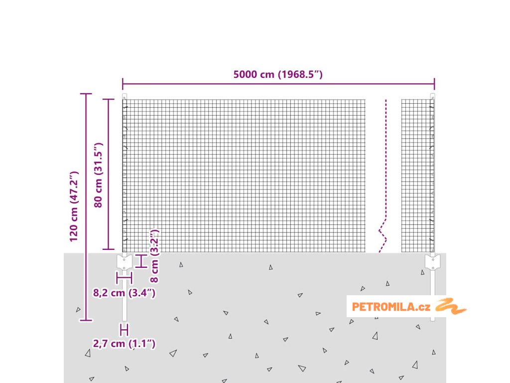 - Celkové rozměry: 5000.0 x 2.7 x 80 cm (D x Š x V)