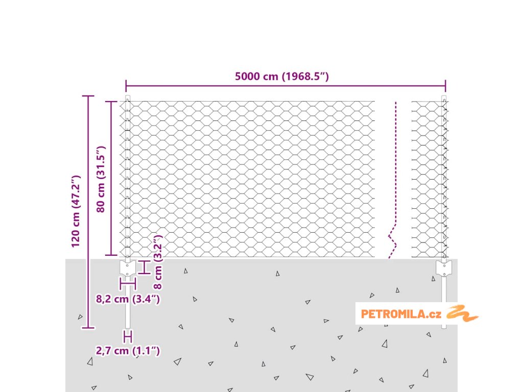 - Celkové rozměry: 5000.0 x 2.7 x 80 cm (D x Š x V)